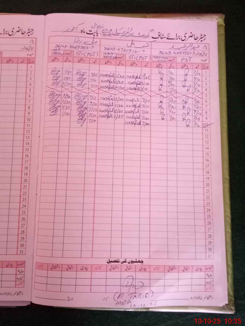 | CNIC | Full Name | Designation | R/C | Absence During Last Calender Month |