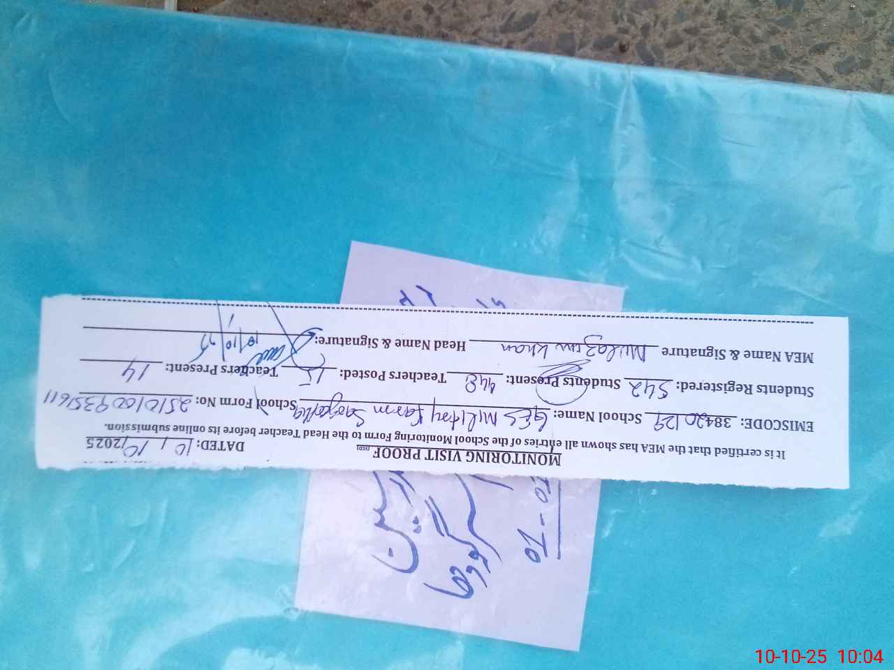 | EMIS Code: 38420129 | Name of School: GES MILITARY FARM SARGODHA | |||