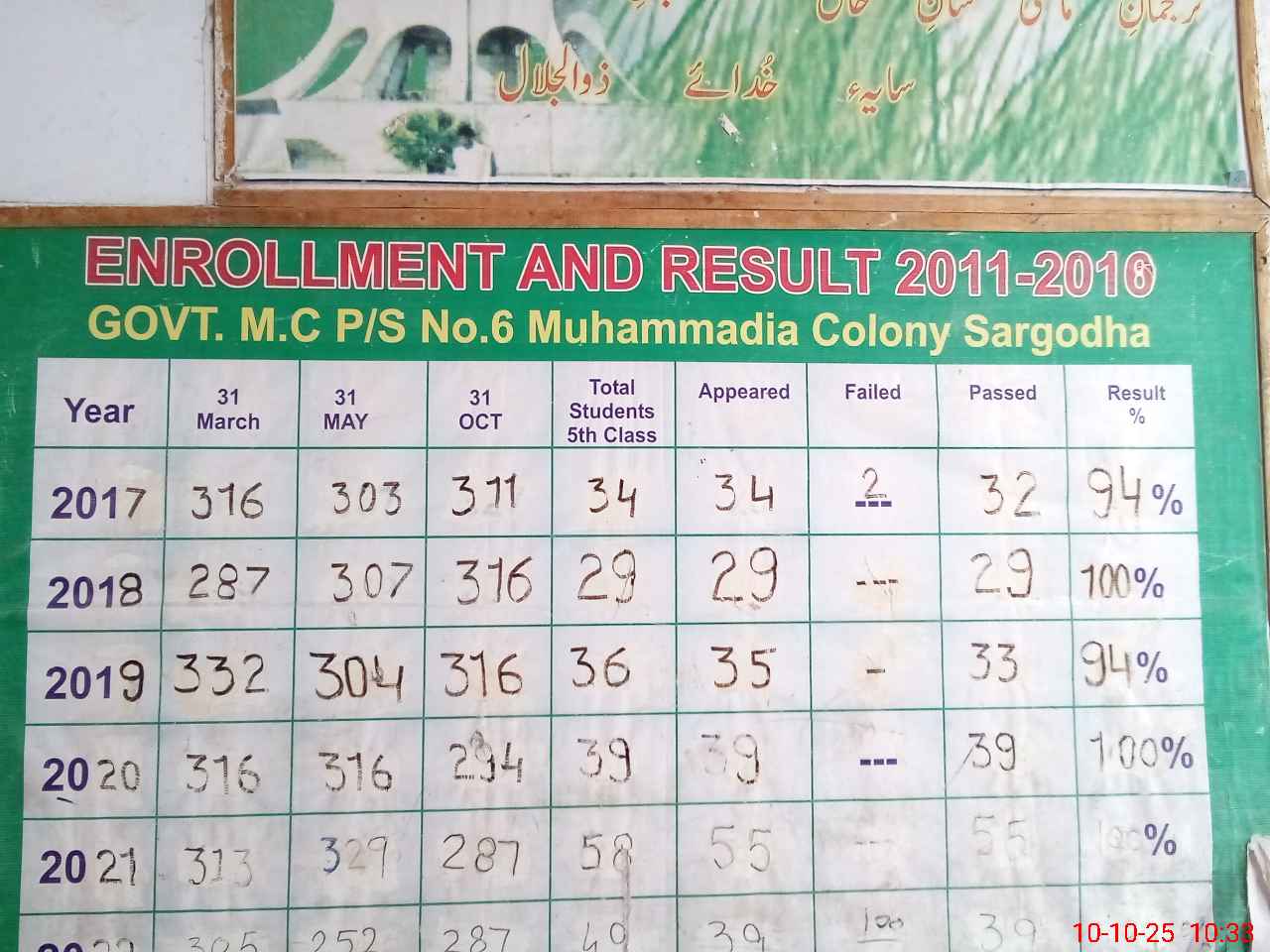 | EMIS Code: 38420396 | Name of School: GPS MC MUHAMMADIA COLONY SARGODHA | |||