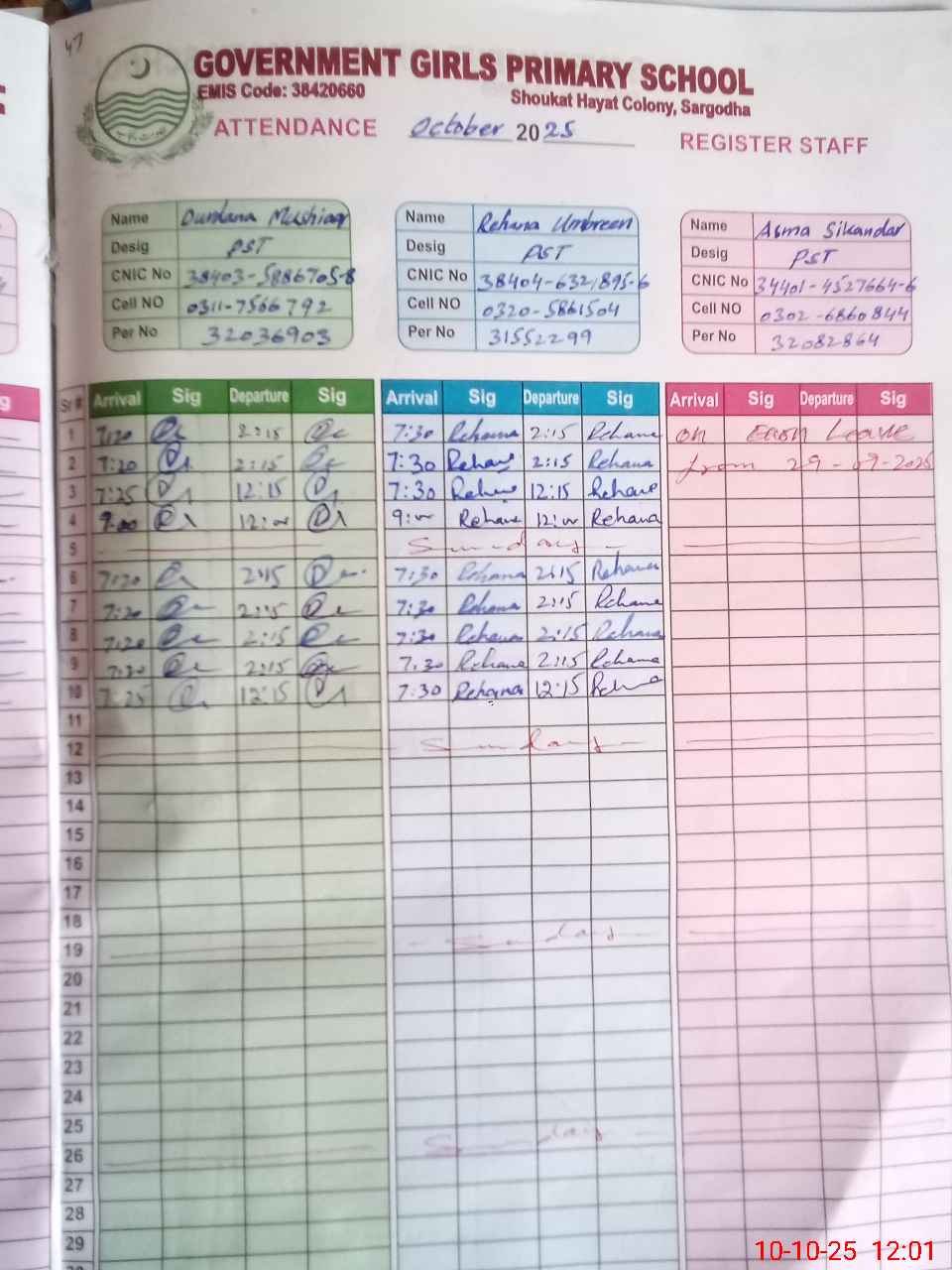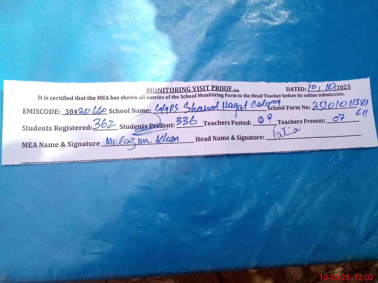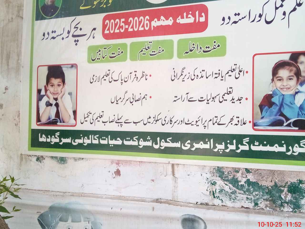 | EMIS Code: 38420660 | Name of School: GGPS SHAUKAT HAYAT COLONY SARGODHA | |||