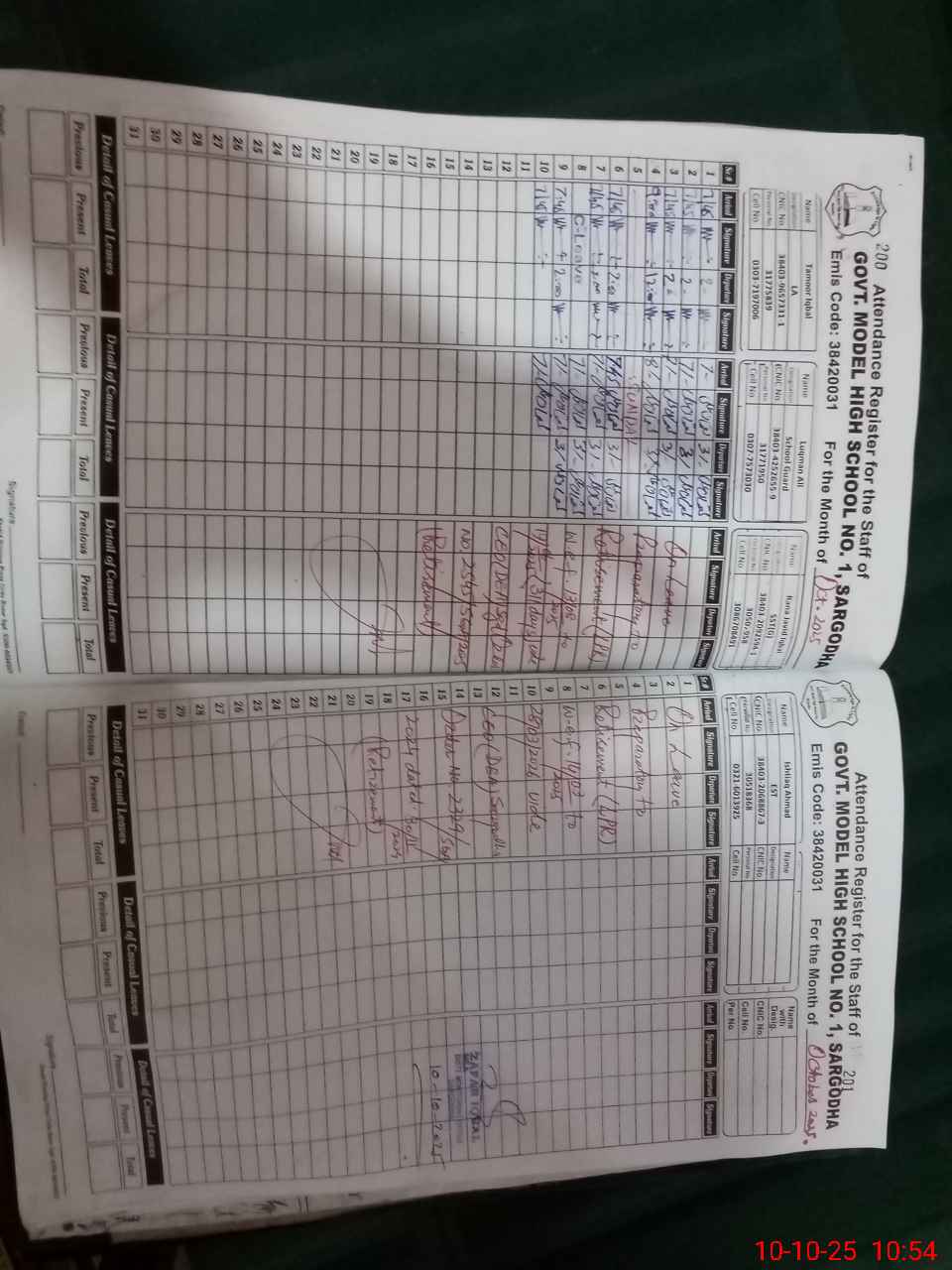 | CNIC | Full Name | Designation | R/C | Absence During Last Calender Month |