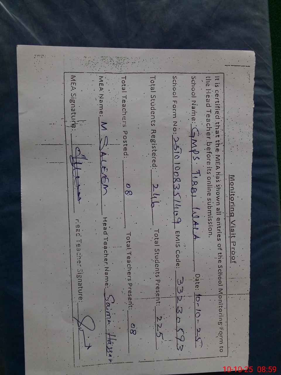 | EMIS Code: 33230593 | Name of School: GMPS TIBBI WALA | |||