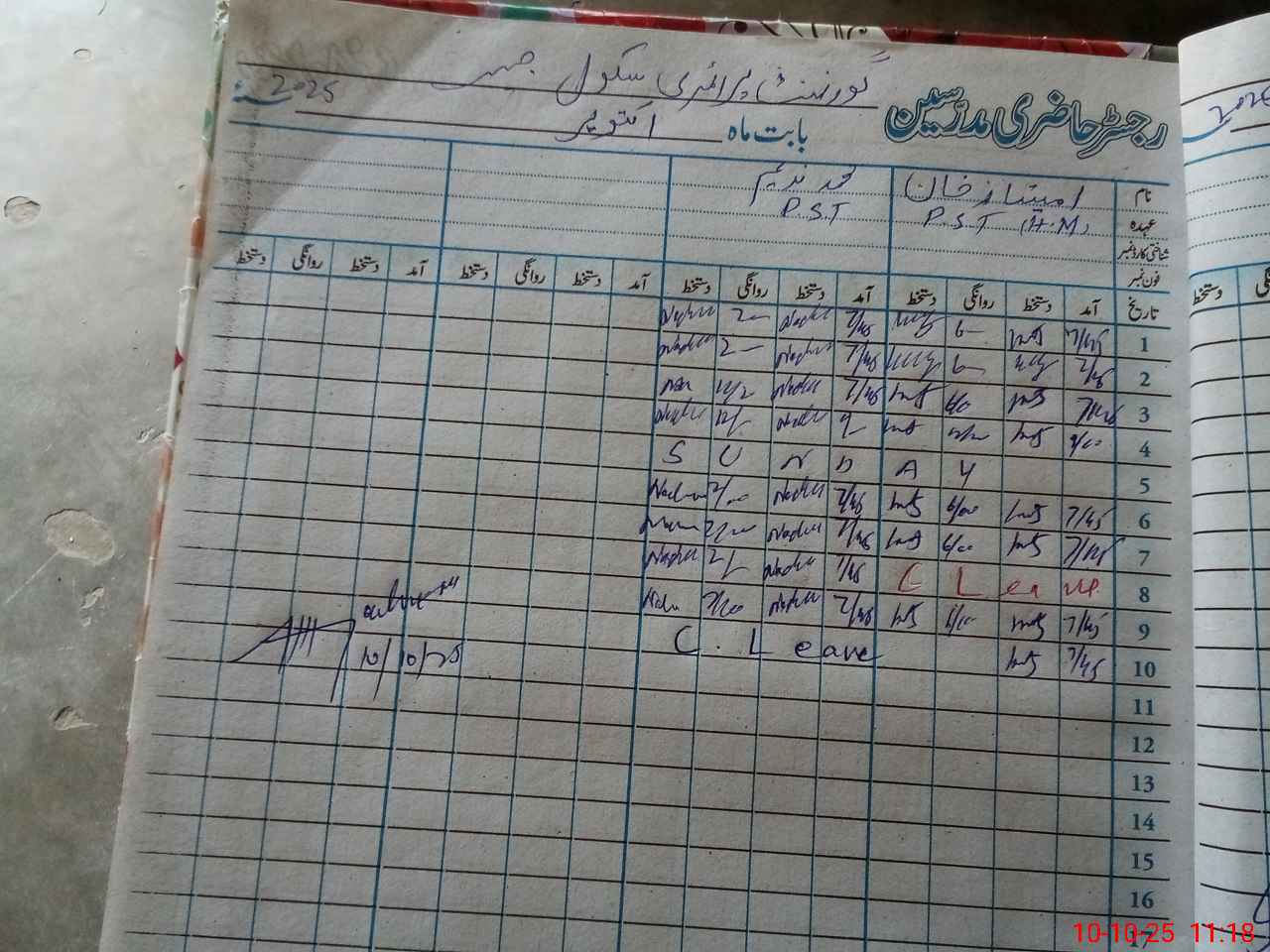 | Name: MU**** NA**** Designation: (School Headmaster's/Headmistress's) PST Phone/Cell Number: 03**** |