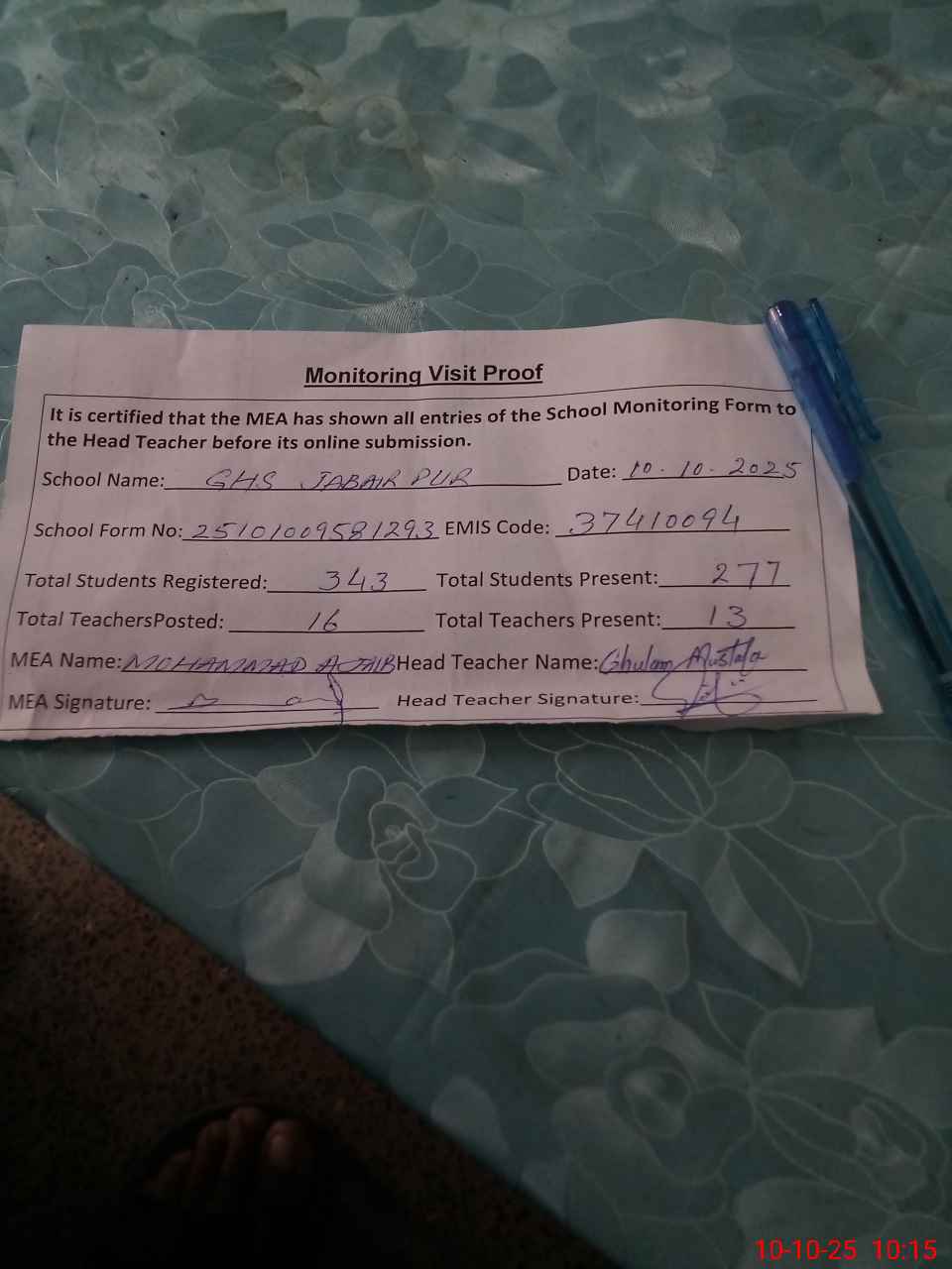 | EMIS Code: 37410094 | Name of School: GHS JABAIR PUR | |||