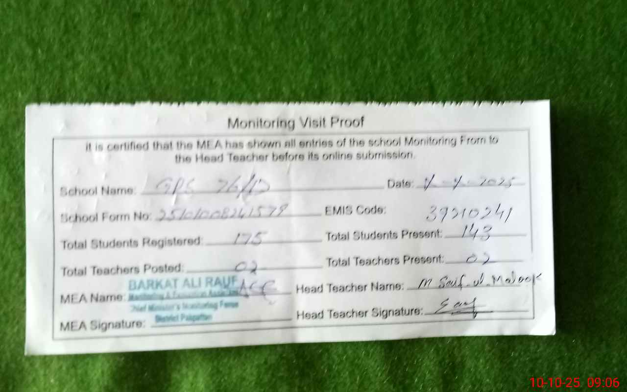 | EMIS Code: 39210241 | Name of School: GPS CHAK NO. 76/D | |||