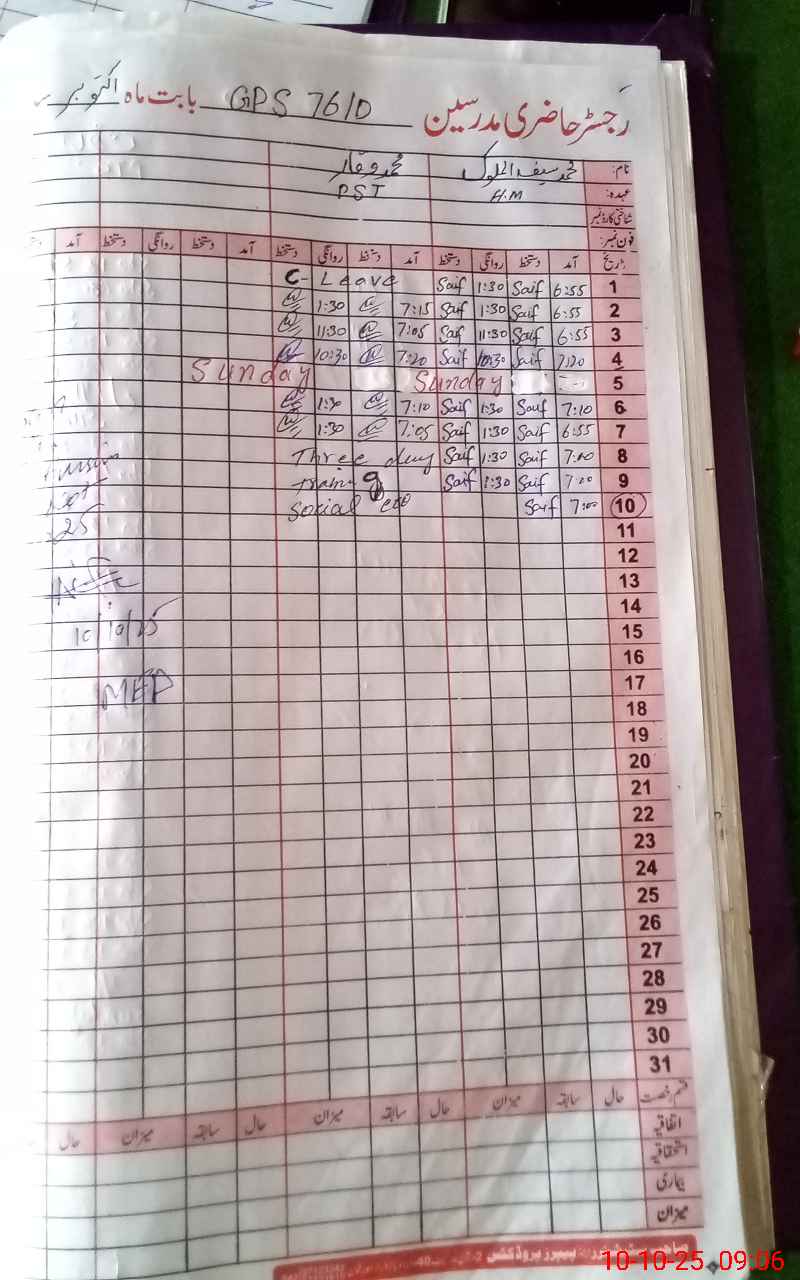 | Name: Mu**** Sa**** UlMa**** Designation: (School Headmaster's/Headmistress's) PST Phone/Cell Number: 03**** |