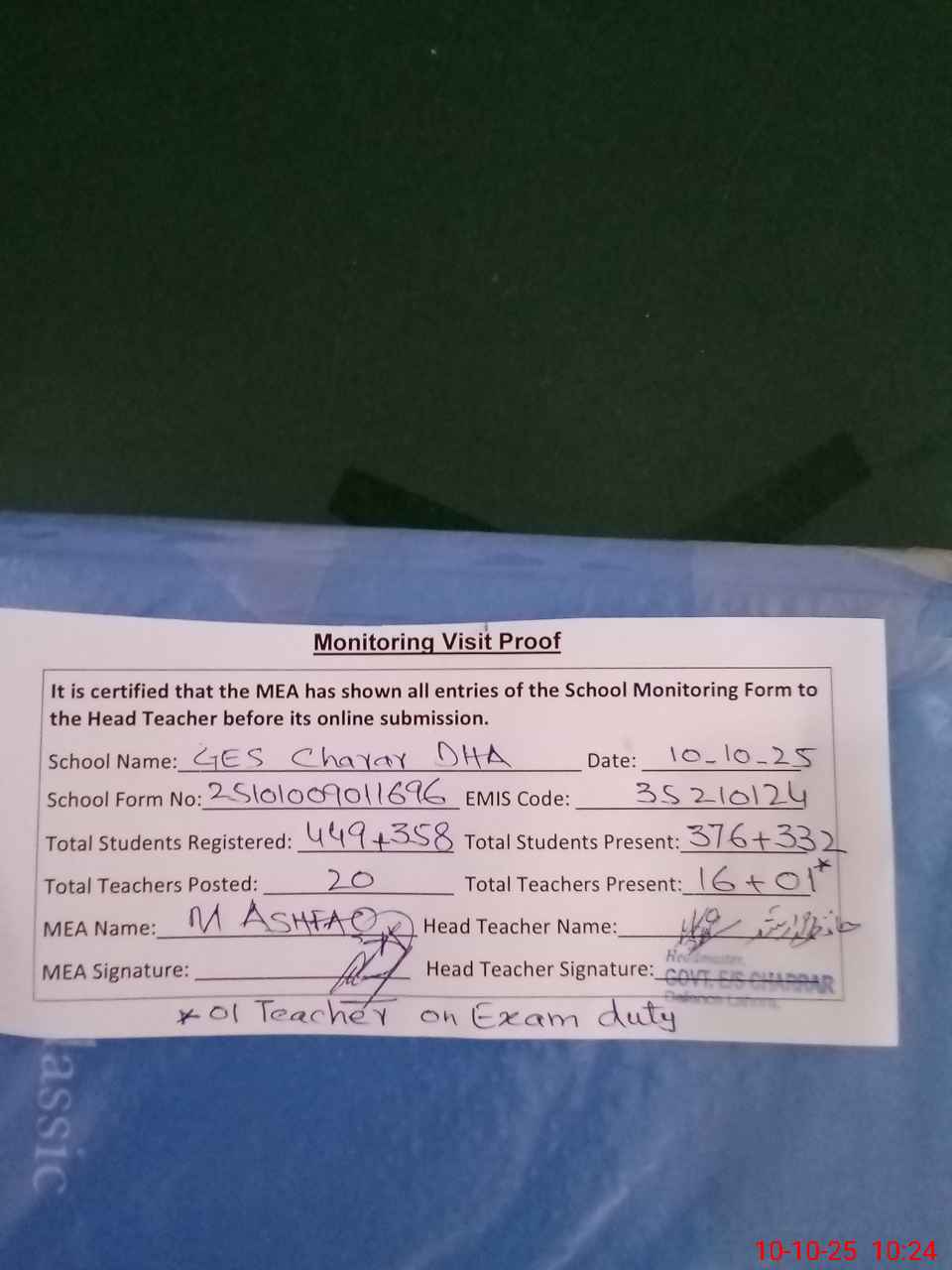 | Certified that this School was Inspected by the Undersigned MEA/DMO Today and the Information Stated Above is as Per Record. | |||||