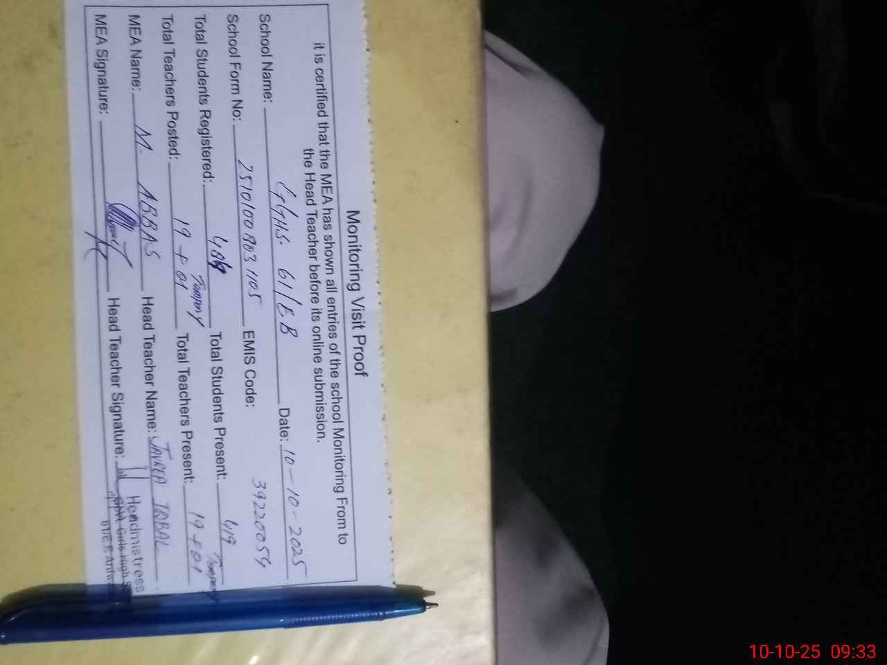 | Certified that this School was Inspected by the Undersigned MEA/DMO Today and the Information Stated Above is as Per Record. | |||||
