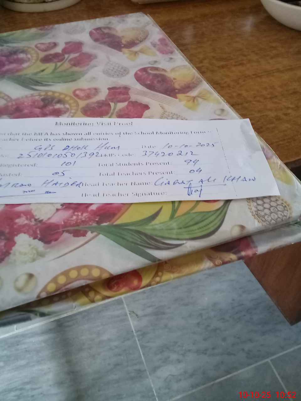 | Certified that this School was Inspected by the Undersigned MEA/DMO Today and the Information Stated Above is as Per Record. | |||||