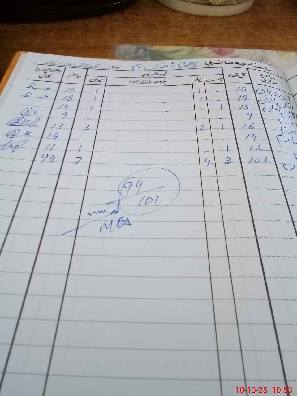 | Total Students Present | 15 | 0 | 18 | 14 | 9 | 13 | 14 | 11 | 94 | |||||||