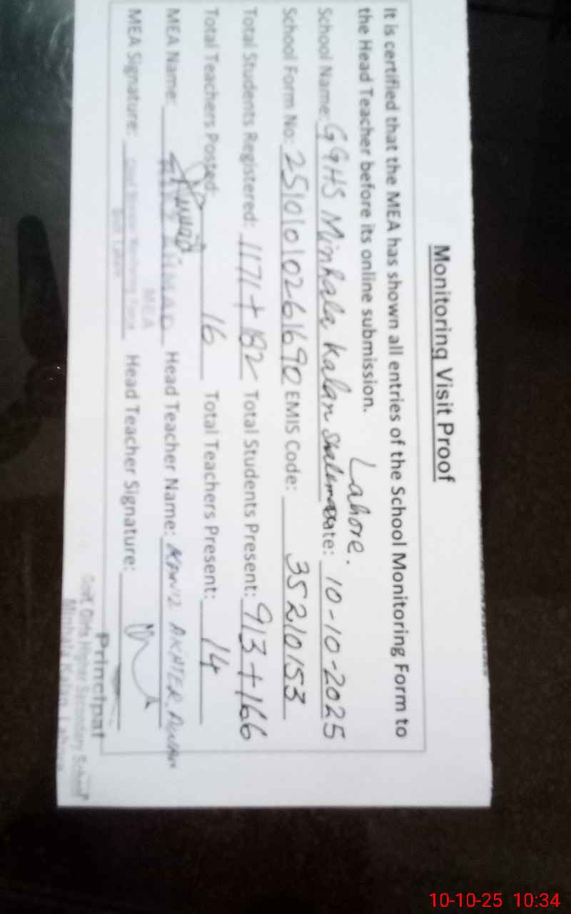 | Certified that this School was Inspected by the Undersigned MEA/DMO Today and the Information Stated Above is as Per Record. | |||||