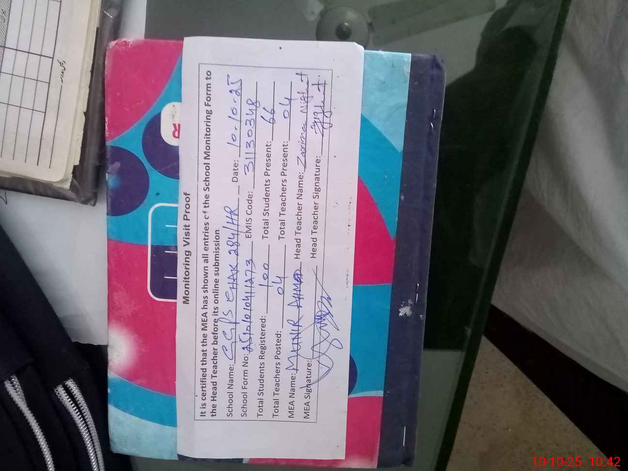 | EMIS Code: 31130348 | Name of School: GGPS CHAK NO 284 HR | |||
