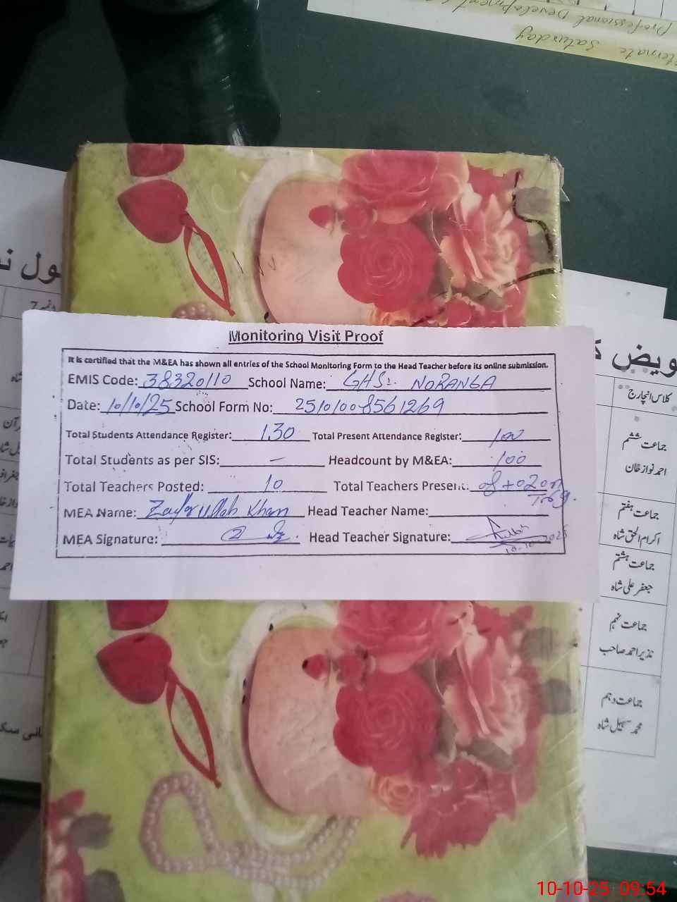 | Certified that this School was Inspected by the Undersigned MEA/DMO Today and the Information Stated Above is as Per Record. | |||||