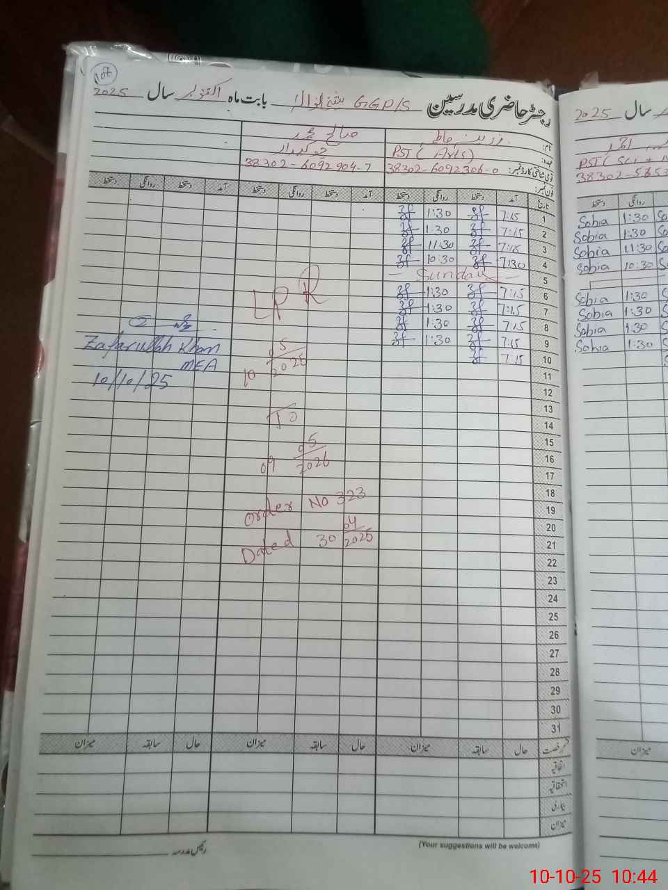 | Monitoring Date: 10-10-2025 | Start Time: 10-10-2025 10:23 AM | End Time: 10-10-2025 10:46 AM | Name of MEA: ZA**** UL**** KH**** | |