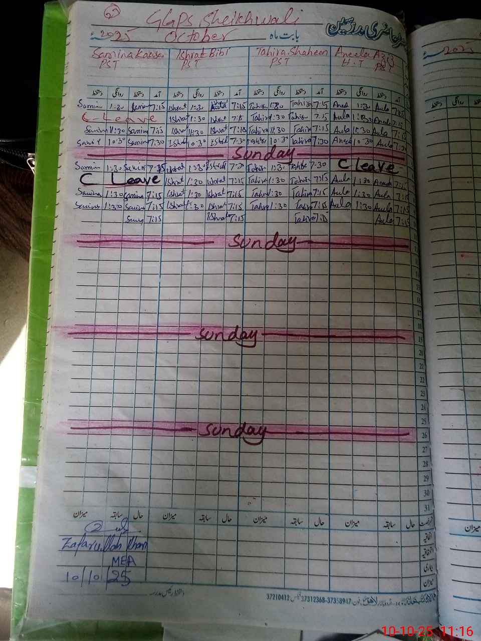 | Name: An**** Az**** Designation: (School Headmaster's/Headmistress's) PST Phone/Cell Number: 03**** |