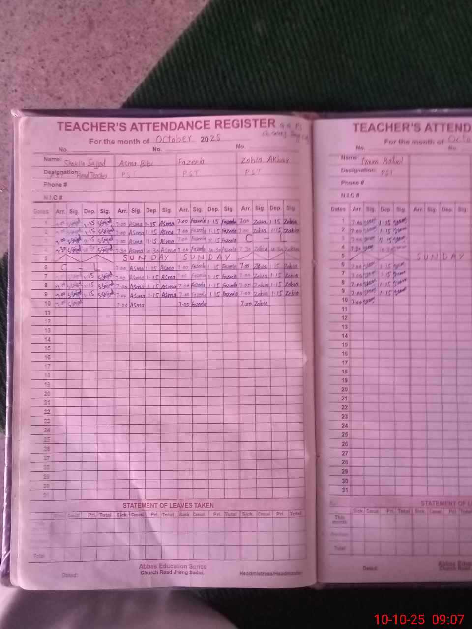 | Name: SH**** SA**** Designation: (School Headmaster's/Headmistress's) PST Phone/Cell Number: 03**** |