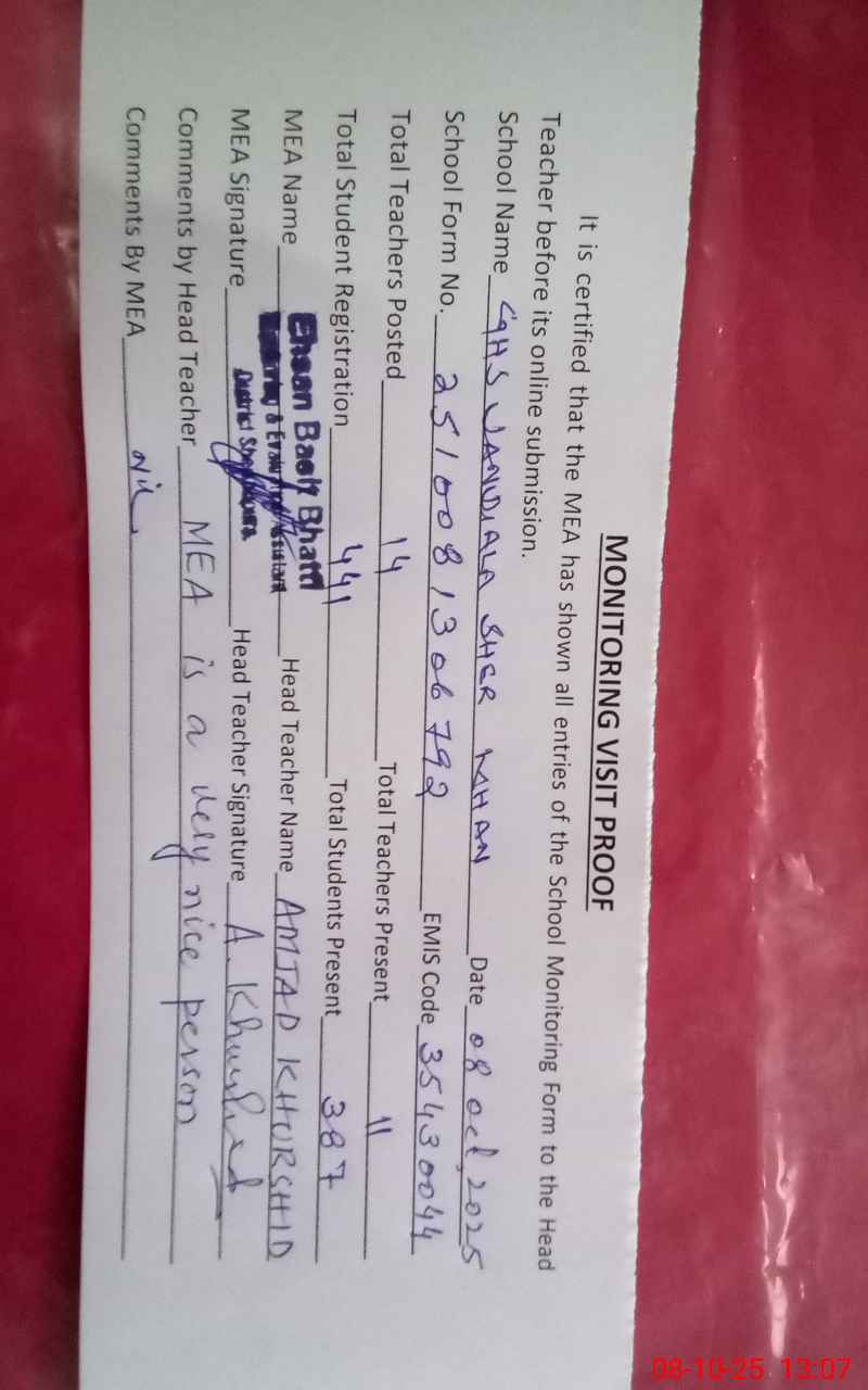 | EMIS Code: 35430044 | Name of School: GHS JANDIALA SHER KHAN | |||