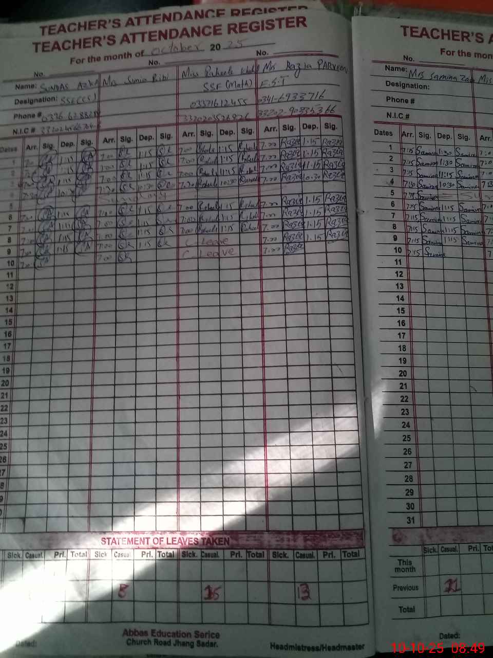 | Name: Su**** Az**** Designation: (School Headmaster's/Headmistress's) S.S.T (IT) Incharge Headmistress Phone/Cell Number: 03**** |