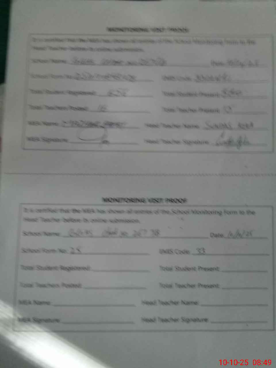 | Certified that this School was Inspected by the Undersigned MEA/DMO Today and the Information Stated Above is as Per Record. | |||||