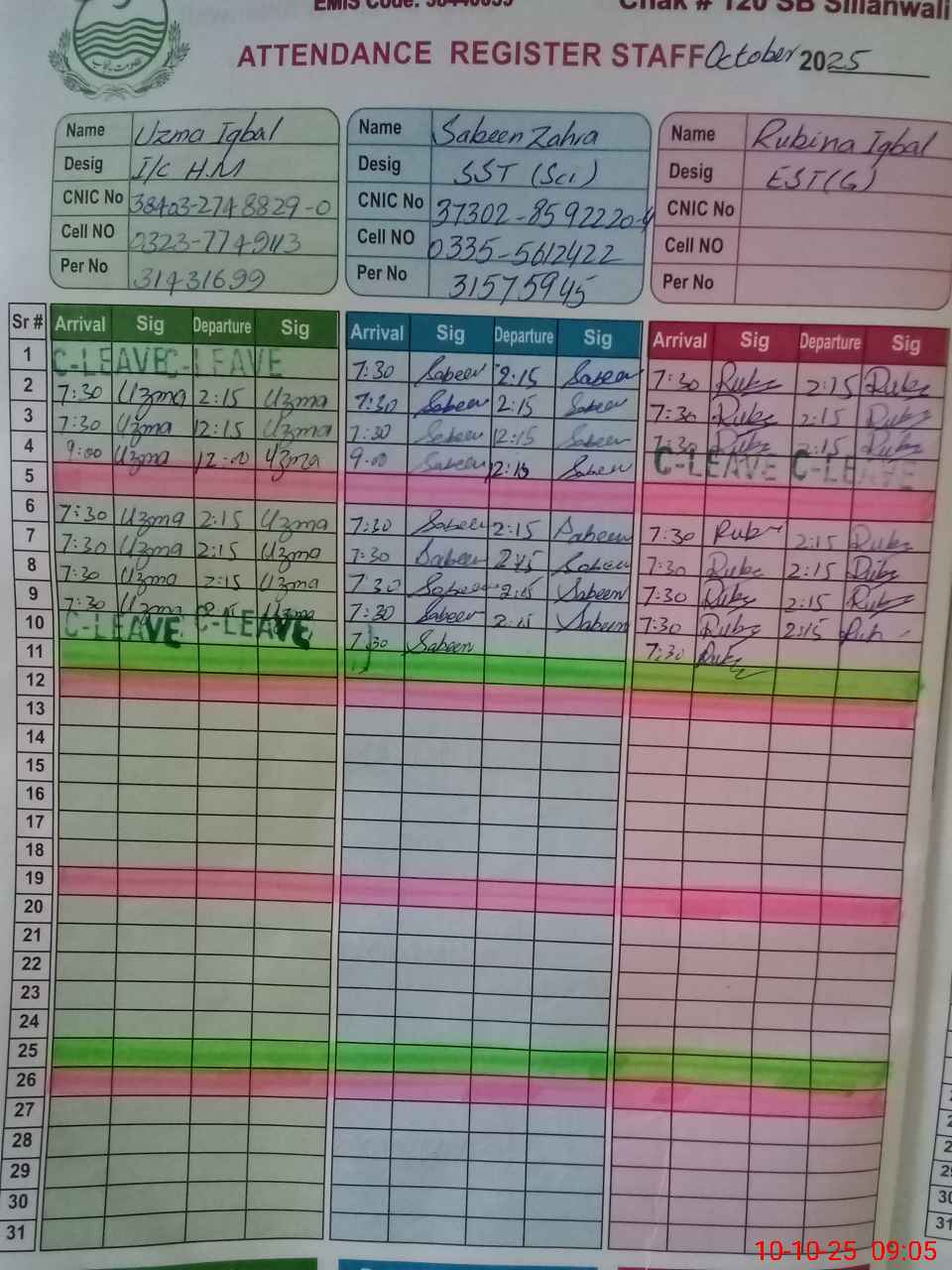| EMIS Code: 38440039 | Name of School: GGHS CHAK NO.120 SB | |||