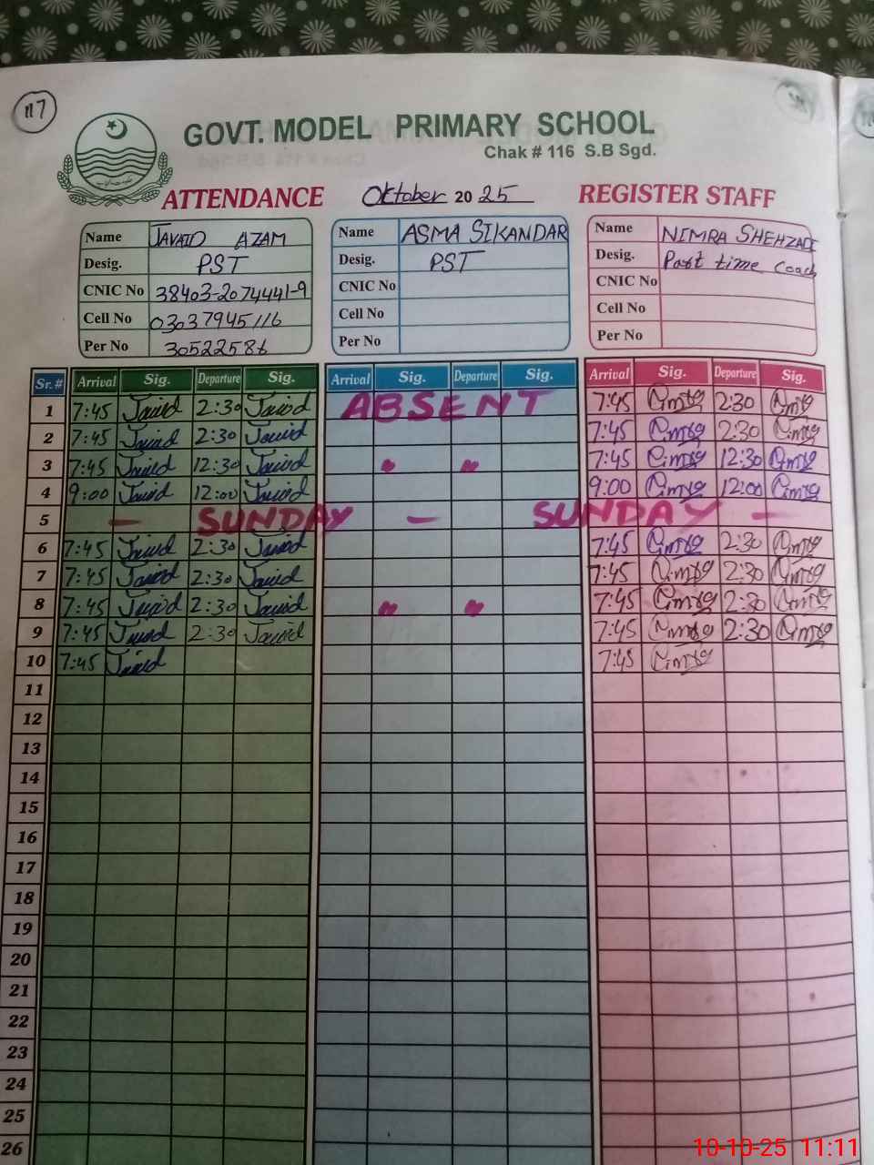| 38**** | As**** Si**** | PST | Regular | 0 | 0 | 30 | 0 | 0 | 0 | 0 | 0 | 0 | Absent (Un-Authorized) |