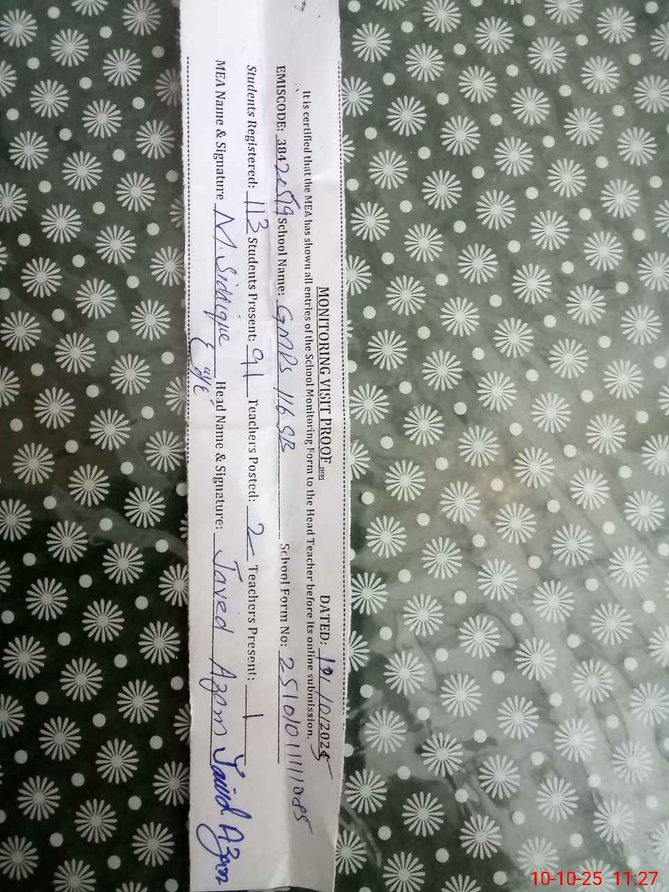 | EMIS Code: 38420519 | Name of School: GMPS CHAK NO.116 SB | |||