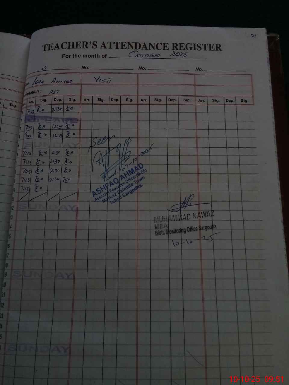 | Name: MU**** AZ**** Designation: (School Headmaster's/Headmistress's) PST Phone/Cell Number: 03**** |