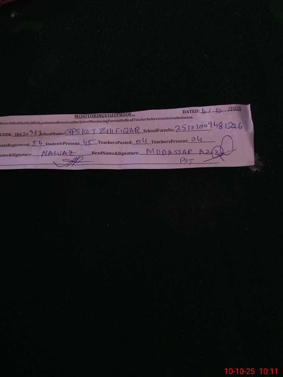 | EMIS Code: 38420387 | Name of School: GPS KOT ZULFIQAR | |||