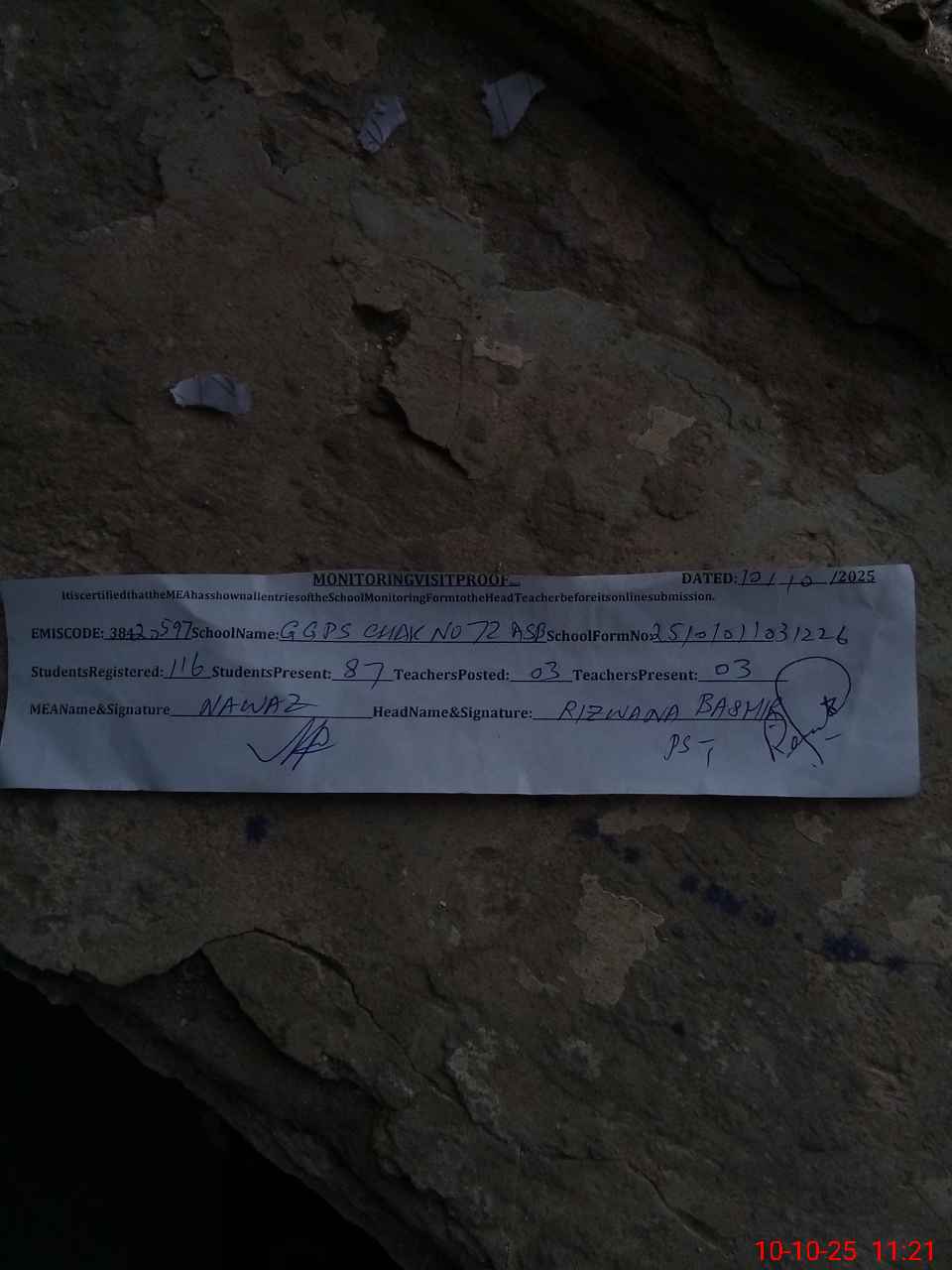 | Certified that this School was Inspected by the Undersigned MEA/DMO Today and the Information Stated Above is as Per Record. | |||||