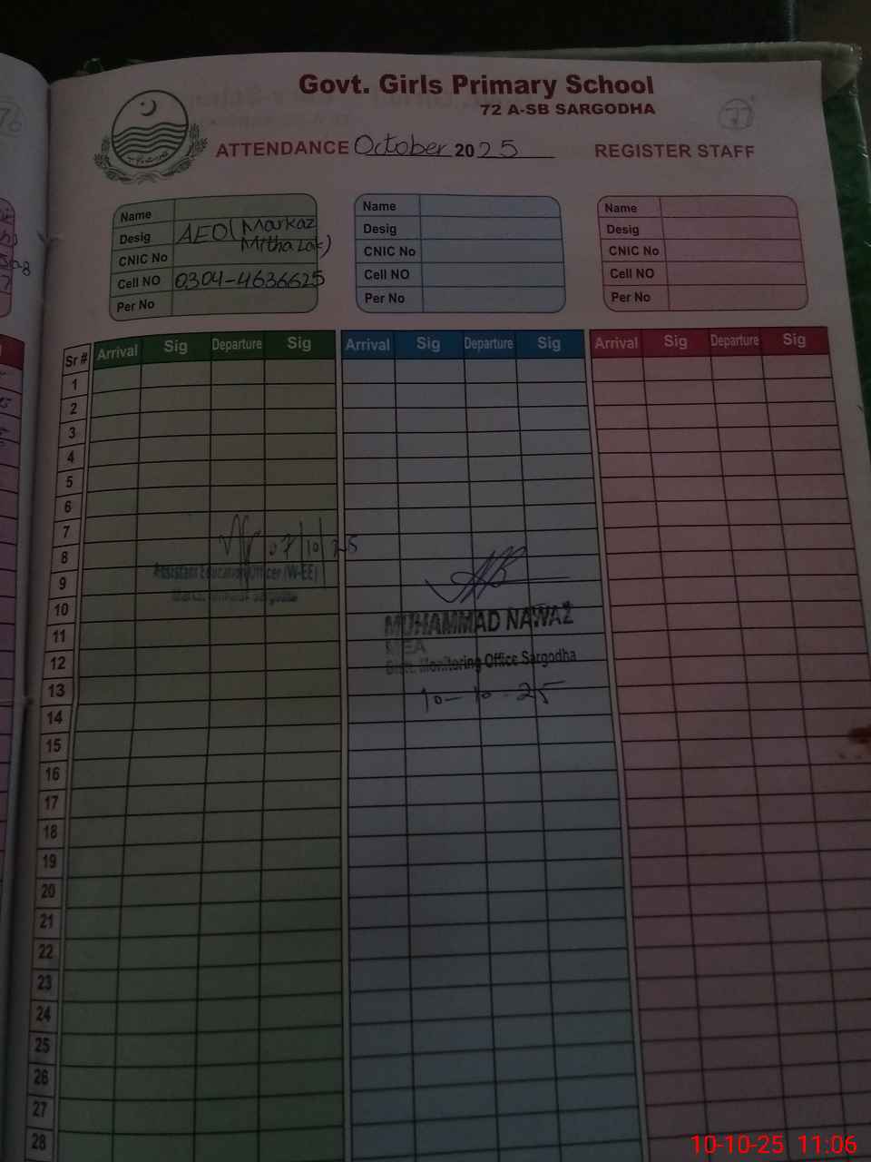 | Name of AEO: | AEO Contact No.: | MEA Phone#: 03**** | ||
