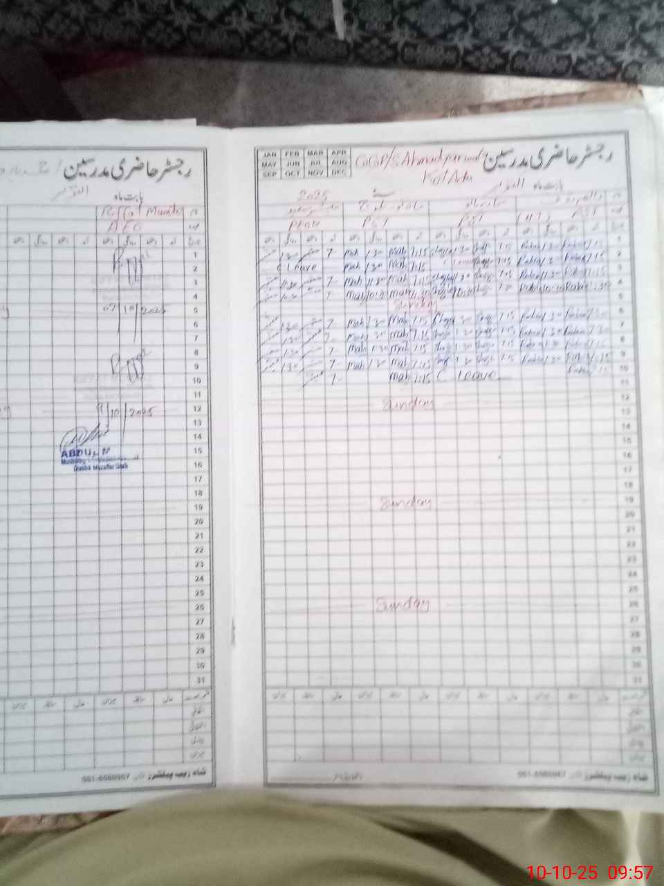 | CNIC | Full Name | Designation | R/C | Absence During Last Calender Month |