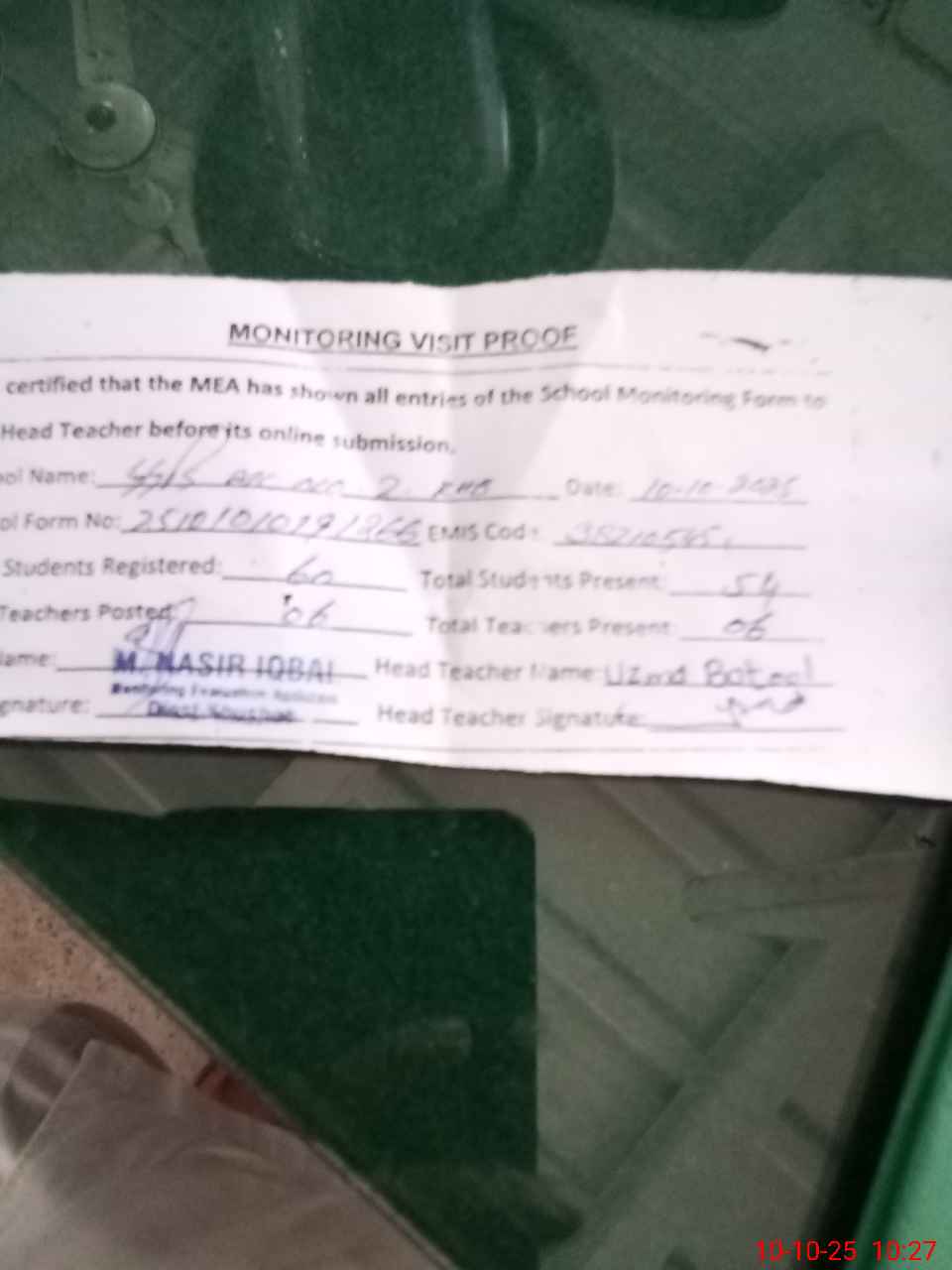 | EMIS Code: 38210545 | Name of School: GGPS MC NO.2 KHUSHAB | |||