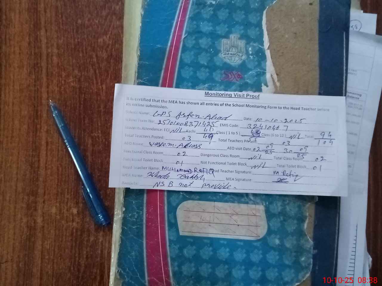 | EMIS Code: 32410467 | Name of School: GPS IRFAN ABAD COLONY | |||