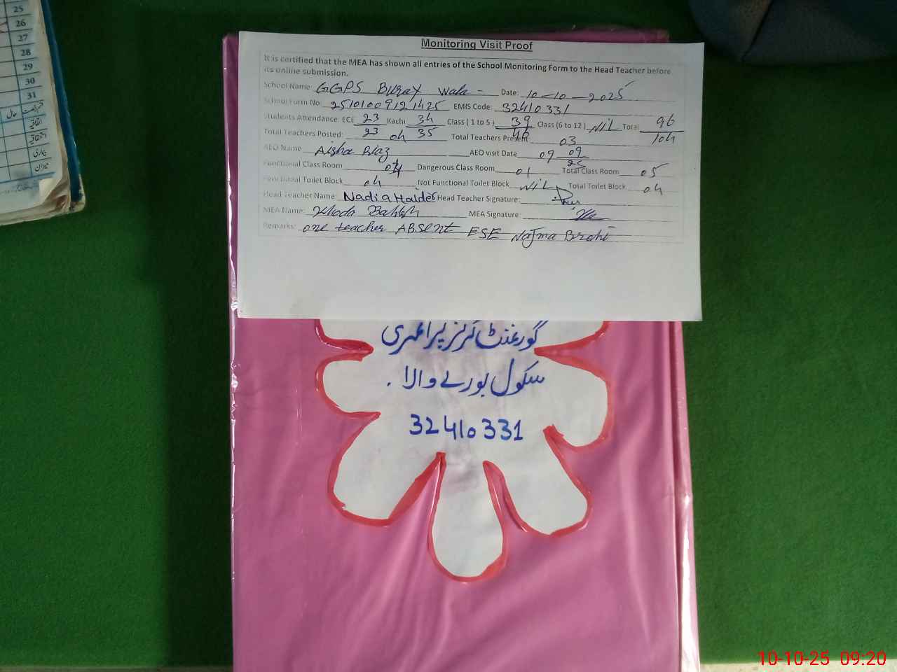 | EMIS Code: 32410331 | Name of School: GGPS BURAY WALA | |||