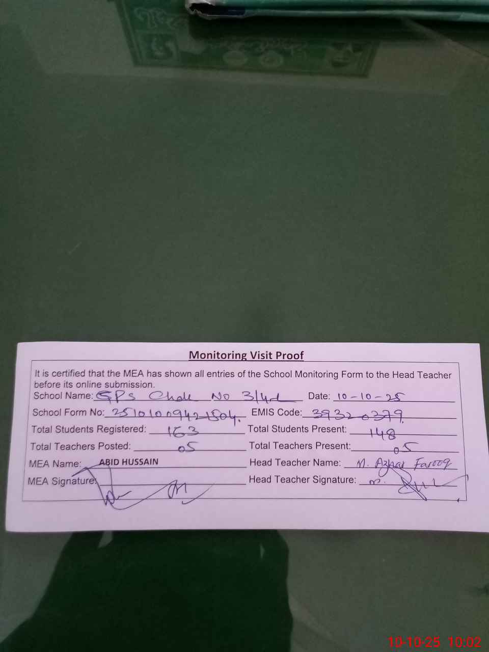 | Name: MAz**** Fa**** Designation: (School Headmaster's/Headmistress's) PTC/JV Phone/Cell Number: 03**** |
