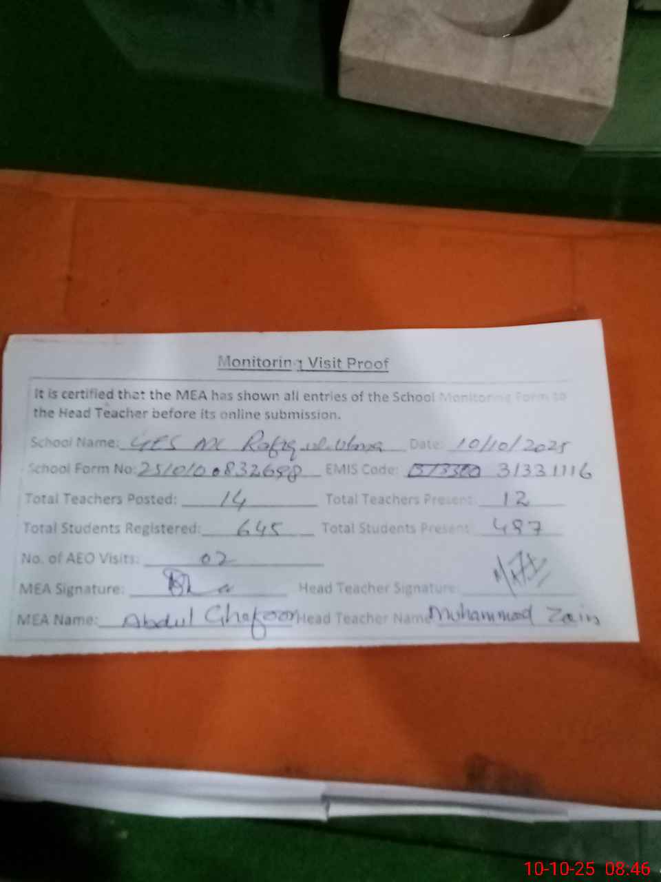 | EMIS Code: 31331116 | Name of School: GES MC RAFIQ-UL-ULMA | |||