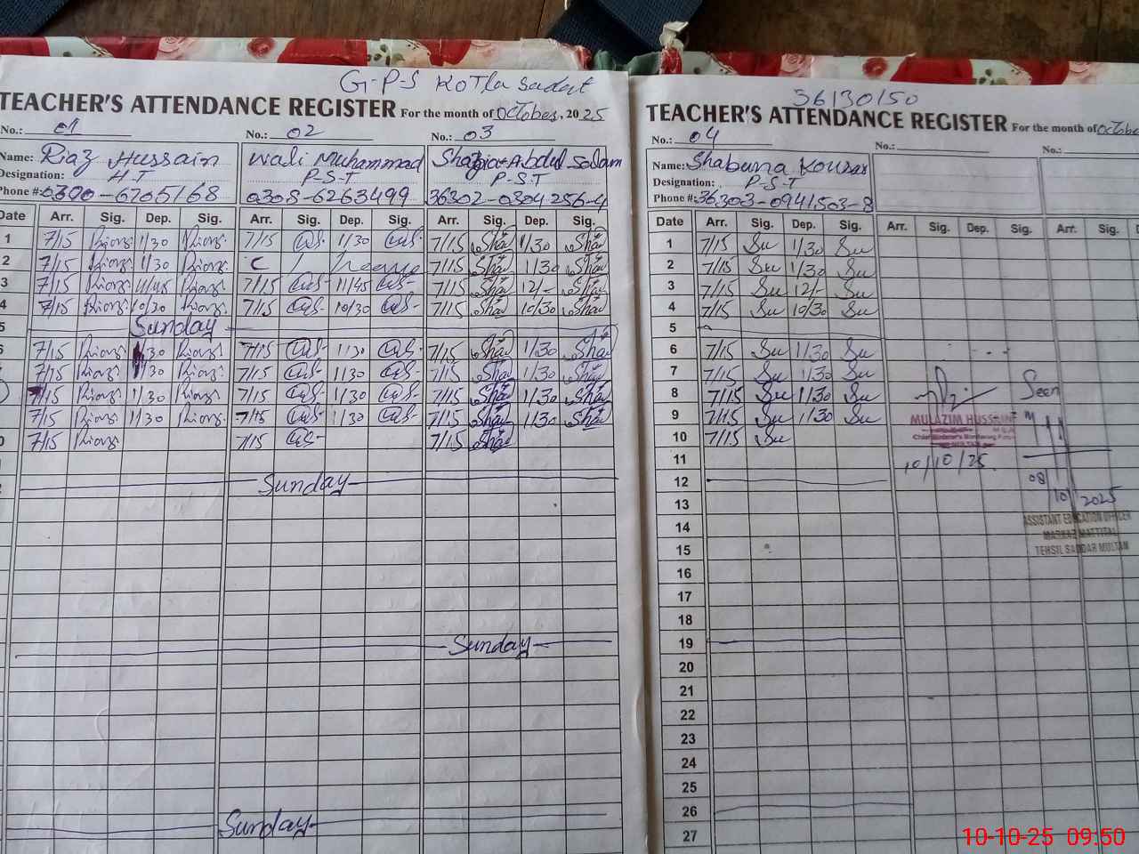 | Name: RI**** HU**** Designation: (School Headmaster's/Headmistress's) PST Phone/Cell Number: 03**** |