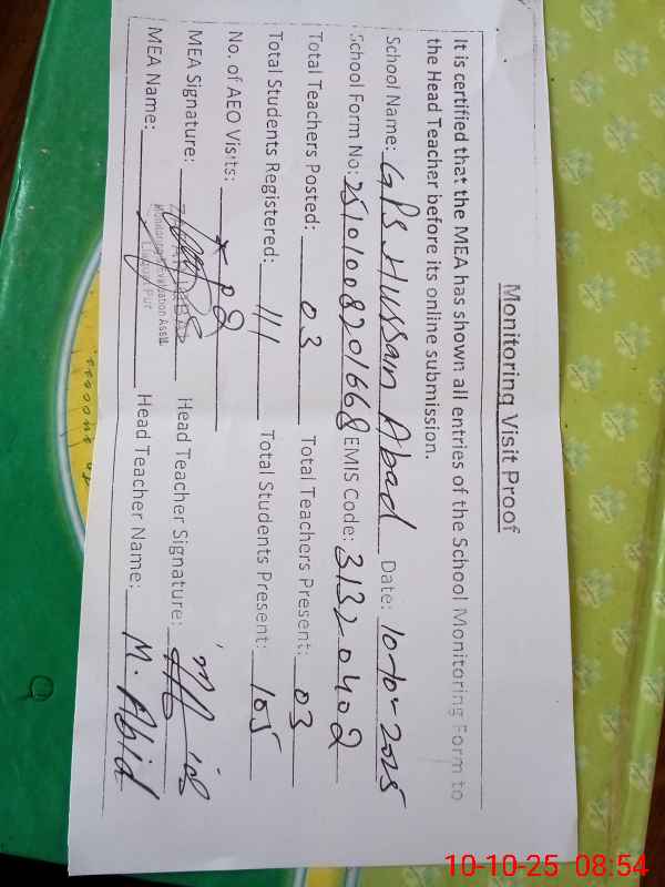 | EMIS Code: 31320402 | Name of School: GPS HUSSAIN ABAD NO.2 | |||