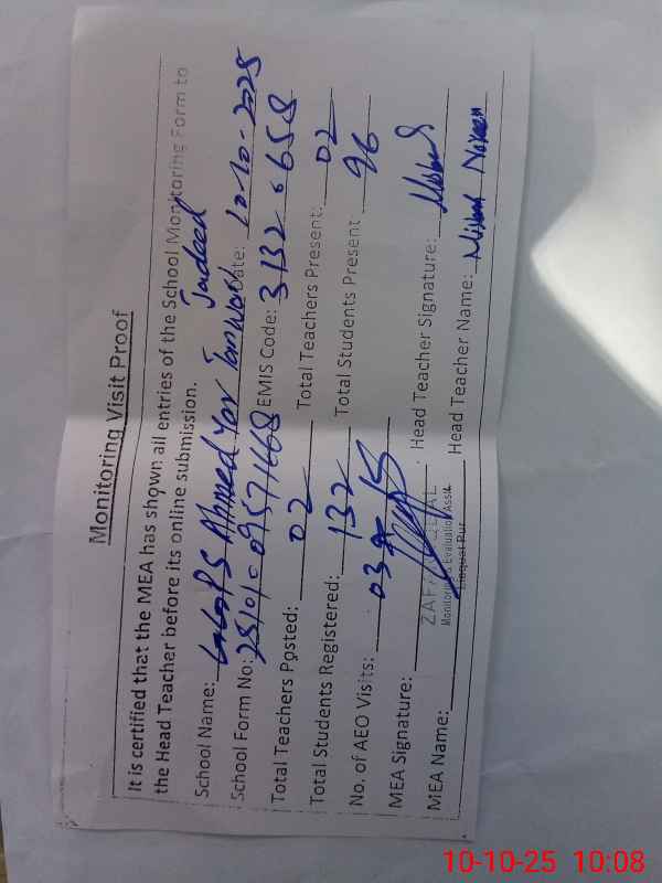 | Certified that this School was Inspected by the Undersigned MEA/DMO Today and the Information Stated Above is as Per Record. | |||||