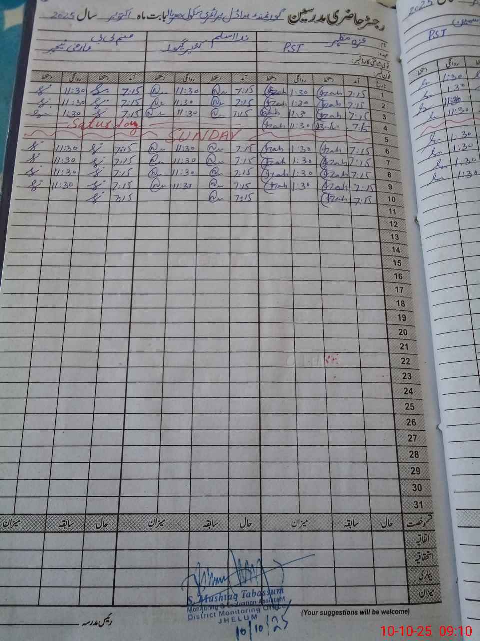 | Monitoring Date: 10-10-2025 | Start Time: 10-10-2025 08:39 AM | End Time: 10-10-2025 09:10 AM | Name of MEA: Sh**** Mu**** Ta**** | |