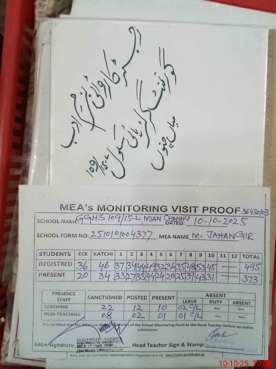 | EMIS Code: 36430103 | Name of School: GGHS 109/15-L, MIAN CHANNU | |||