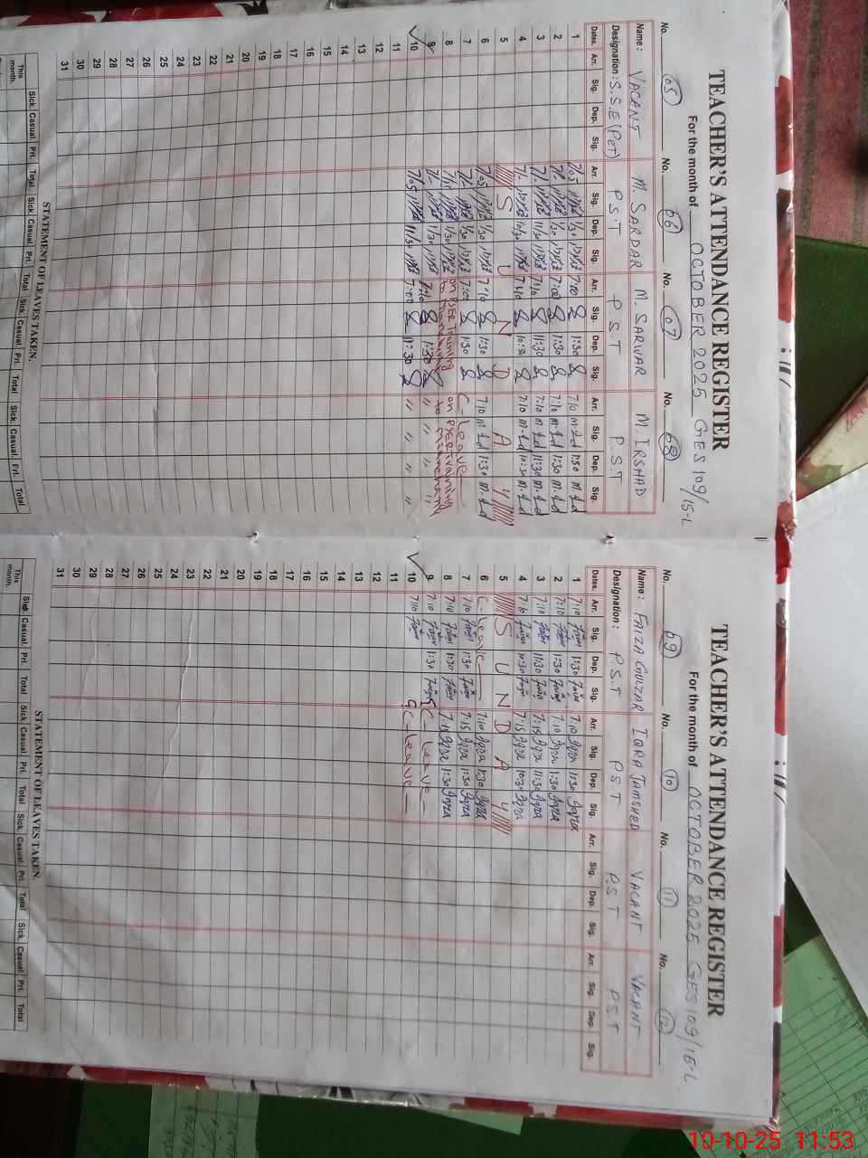 | Remarks (Use Separate Page if Required): IQRA JAMSHED PST FOUND UN AUTHORISED ABSENT FROM DUTY NO CASUAL LEAVE PROOF ON SIS HRMS FOR 09 OCTOBER 2025 AND 10 OCTOBER 2025 ONE TOILET FOUND LOCKED AND NON FUNCTONAL LESSON PLANS ARE NOT AVAILABLE RANDOM CLASS SIX IS NOW PASSED OUT FROM THIS SCHOOL | |||||