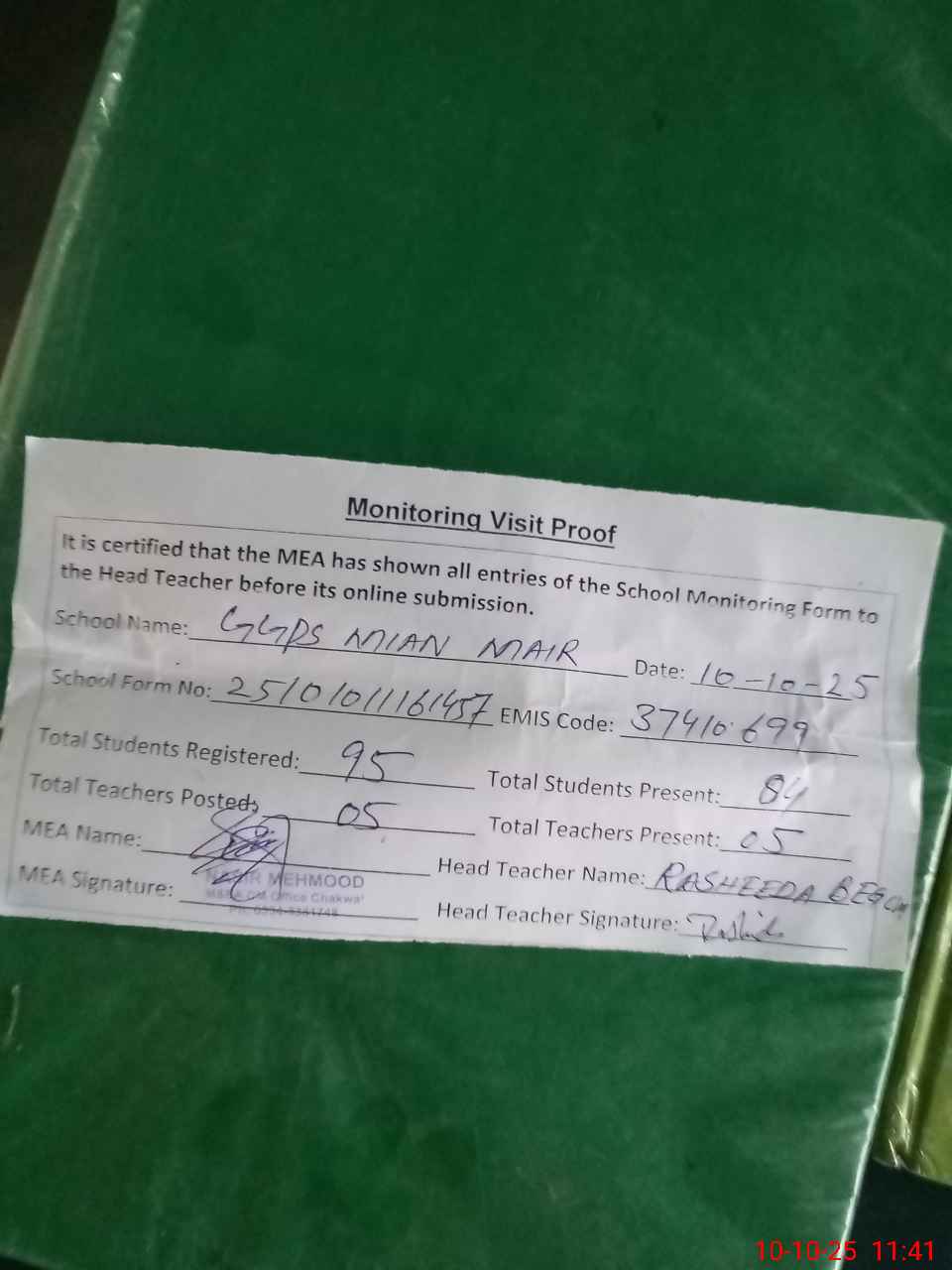 | EMIS Code: 37410699 | Name of School: GGPS MIAN MAIR | |||