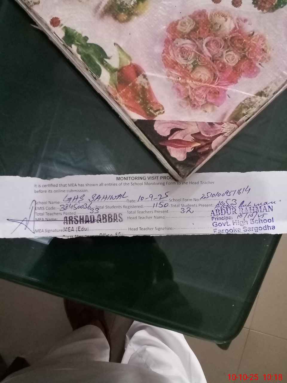 | EMIS Code: 38450036 | Name of School: GHS FAROOKA | |||