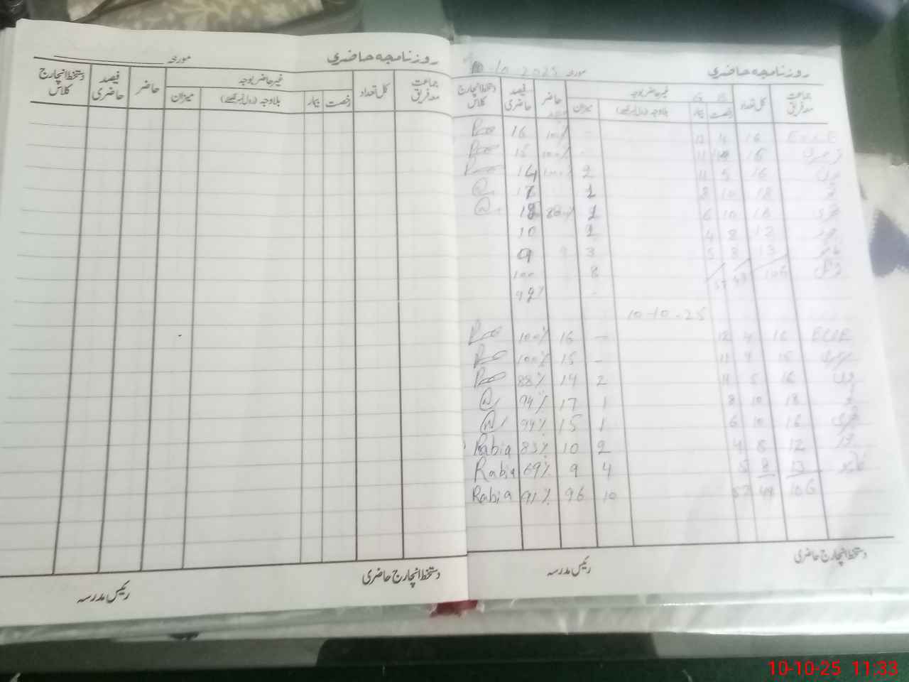 | CNIC | Full Name | Designation | R/C | Absence During Last Calender Month |