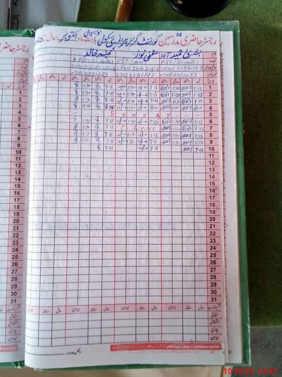 | Name: Uz**** Na**** Designation: (School Headmaster's/Headmistress's) PST Phone/Cell Number: 03**** |