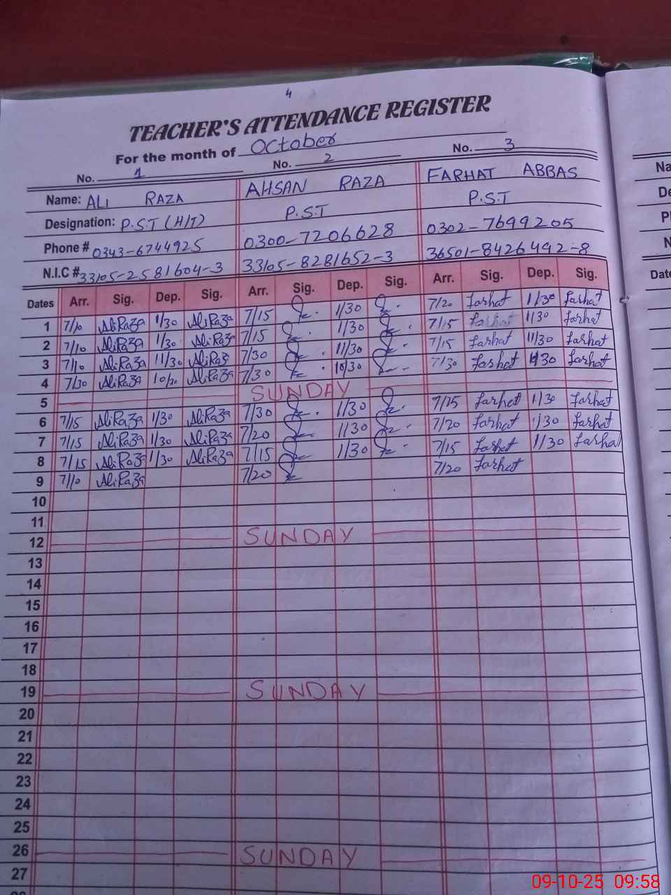 | Name: AL**** RA**** Designation: (School Headmaster's/Headmistress's) PST Phone/Cell Number: 03**** |