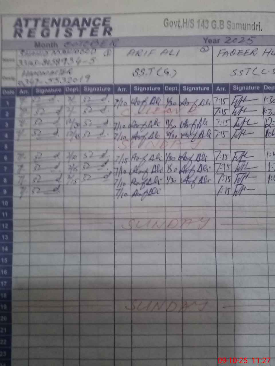 | 33**** | Fa**** Al**** | CHOWKIDAR | Regular | 0 | 0 | 0 | 0 | 0 | 0 | 0 | 0 | 0 | Ex-Pak |