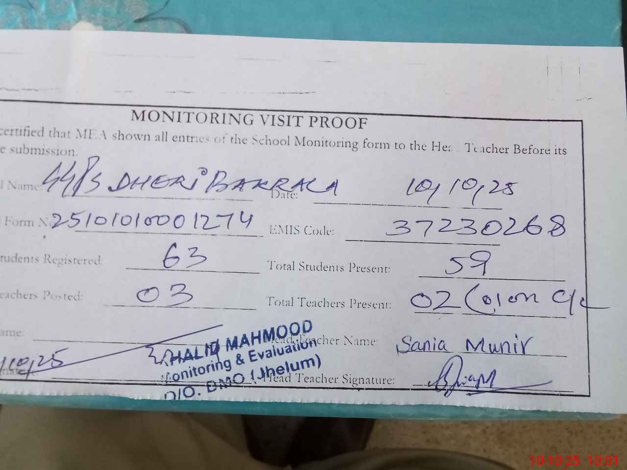 | EMIS Code: 37230268 | Name of School: GGPS DHERI BAKRALA | |||