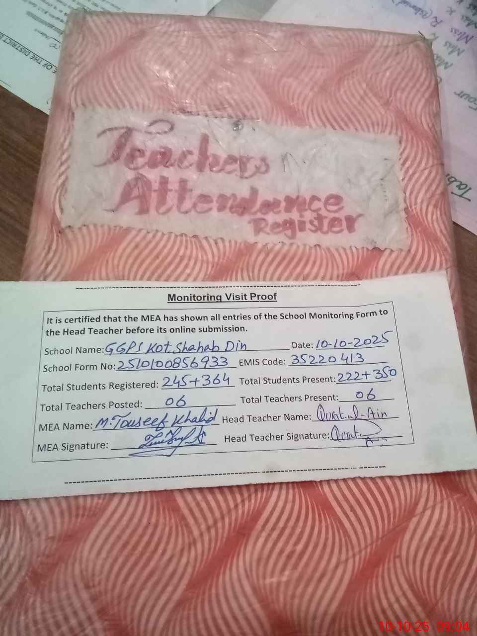 | EMIS Code: 35220413 | Name of School: GGPS KOT SHAHAB DIN | |||